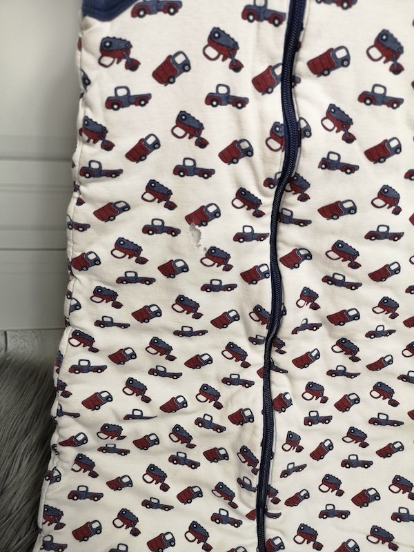 Info: Der Schlafsack hat vorne ein Loch im Obermaterial (s. Detailbild)
