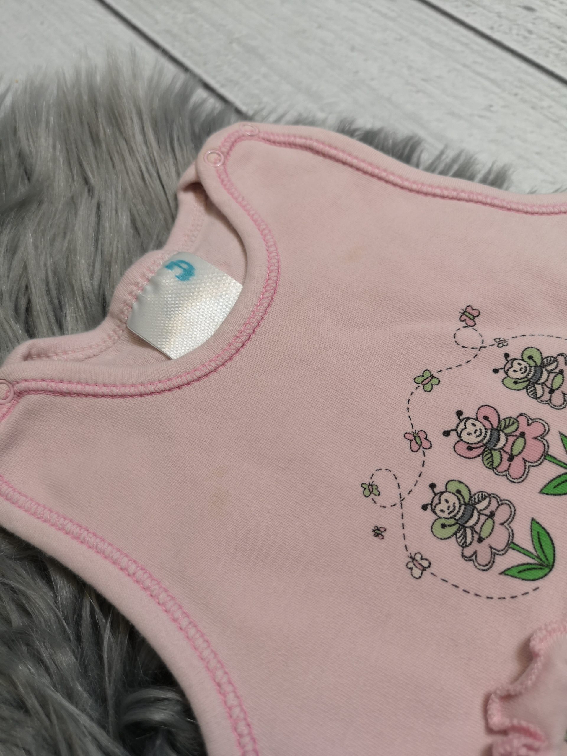 Mangel: Der Strampler hat vorne eine kleine Verfärbung.